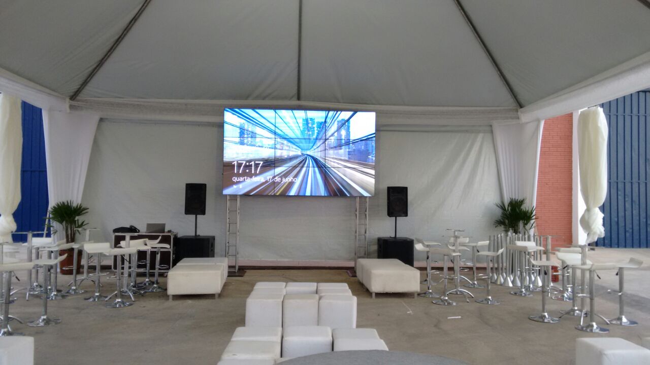 Dois VídeoWall de 09 monitores - (3,60  x  2,0 m). - Lançamento de coleçãoVídeoWall de 09 monitores - (3,60  x  2,0 m).- Eventos corporativos<p>VídeoWall de 09 monitores - (3,60  x  2,0 m) - Stand</p><p>VideoWall de 09 monitores - (3,60  x  2,0 m) - Casamento</p>